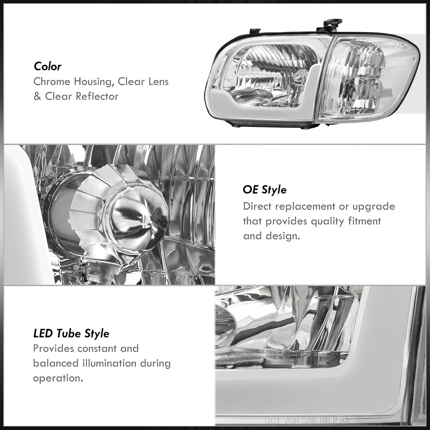| Color | Chrome Housing / Clear Reflector |