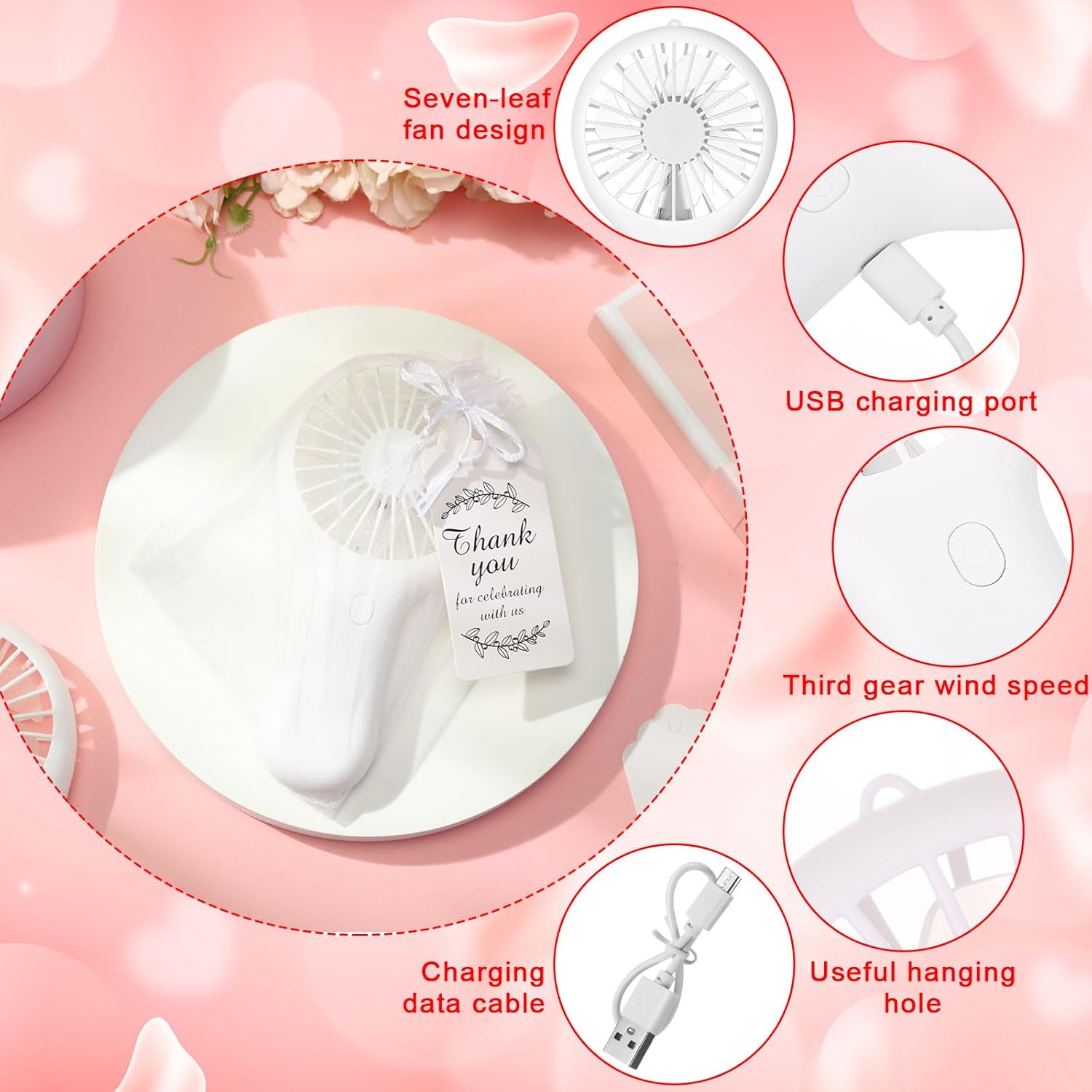 | Included Components | 20X Drawstring bags, 20X Portable fan, 20XThank you kraft tags |